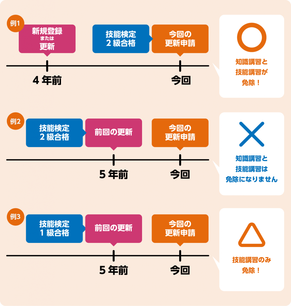 - 登録前に技能検定職種2級のみに合格されている場合は、更新講習の受講が必要です。